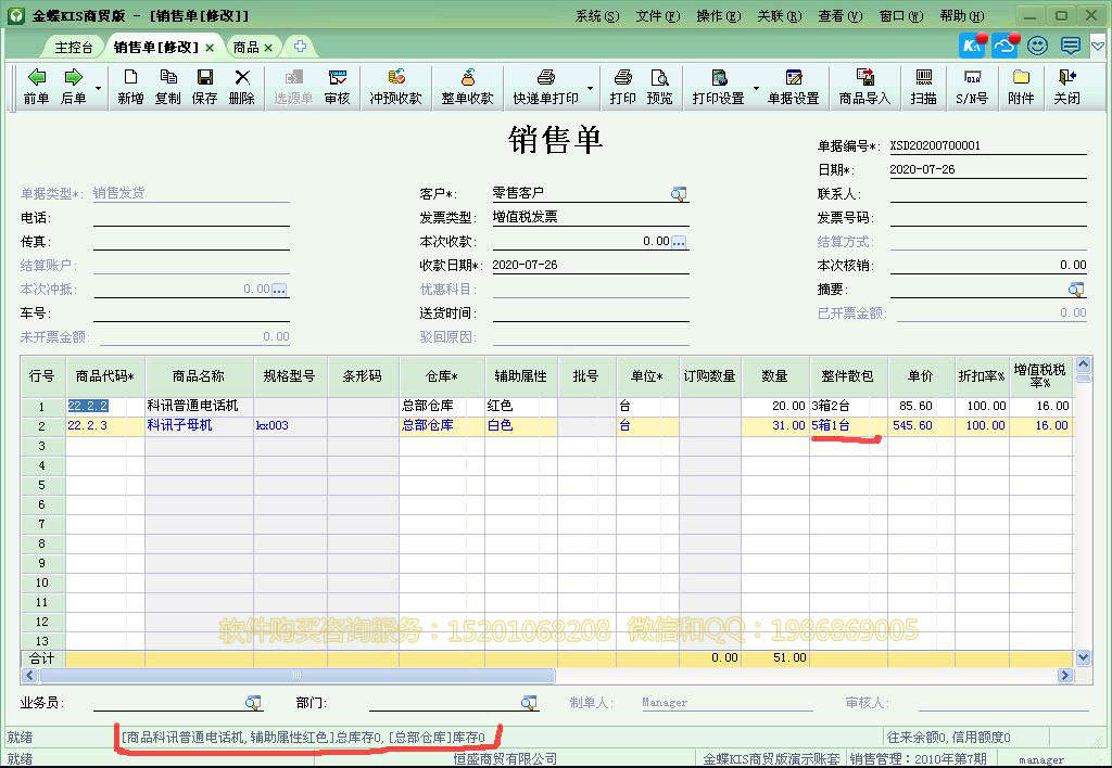 销售单:
