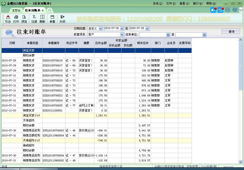 往来对账单: