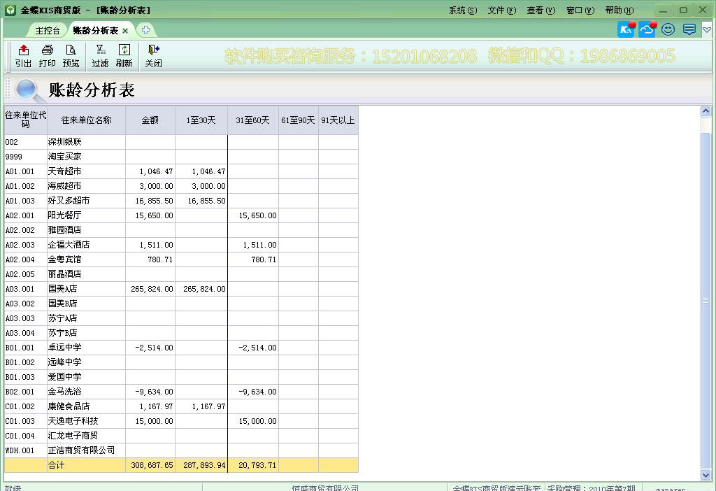 账龄分析表: