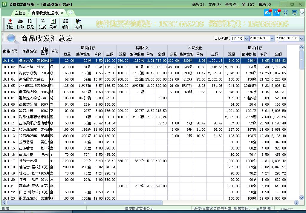 批号管理商品收发汇总表: