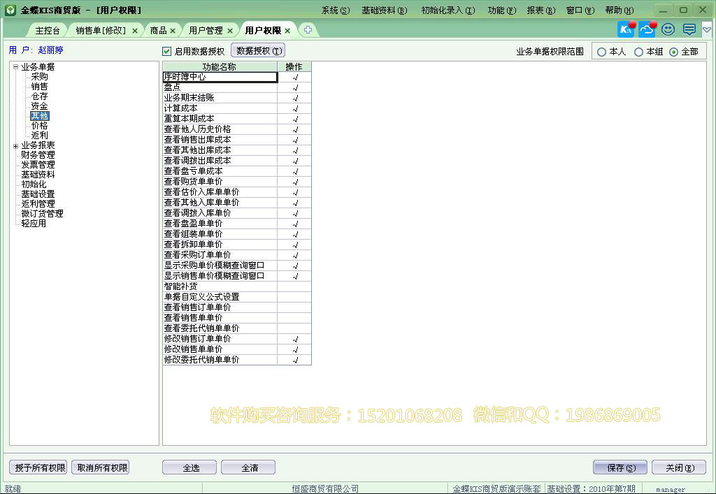 用户权限-客户授权: