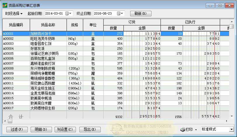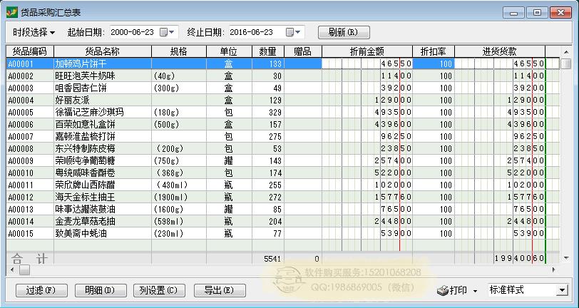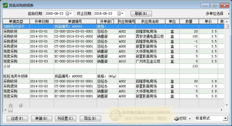 采购报表:货品采购明细表