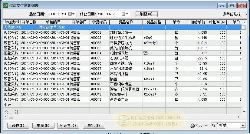采购报表:供应商供货明细表