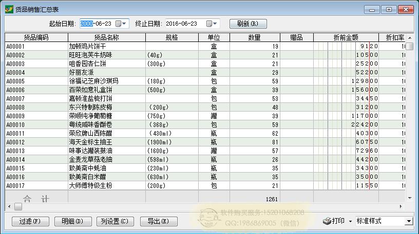 销售报表:货品销售汇总表
