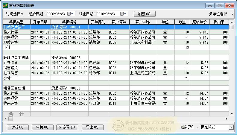 销售报表:货品销售明细表