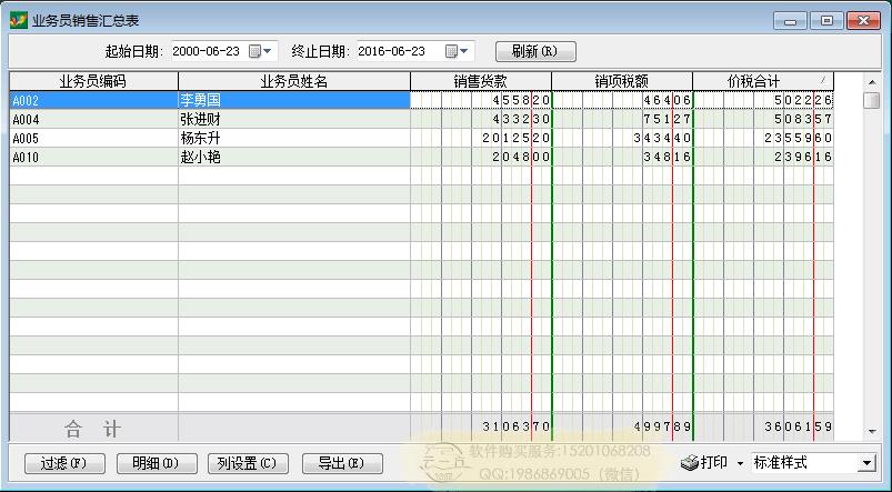 销售报表:业务员销售汇总表
