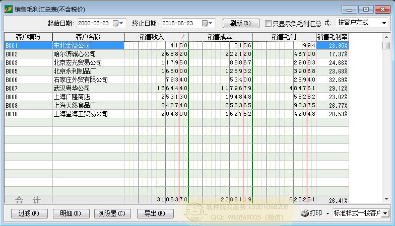 销售报表:销售毛利汇总表
