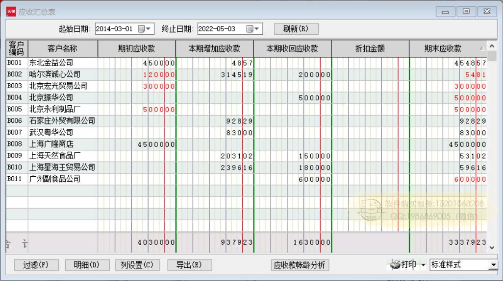 应收账款汇总表: