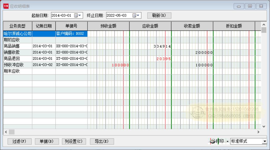 应收账款明细表: