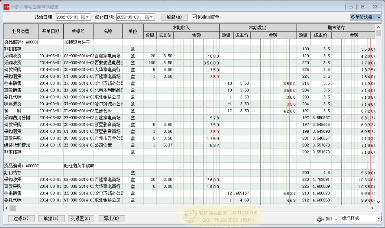 库存报表:仓库账面库存明细表