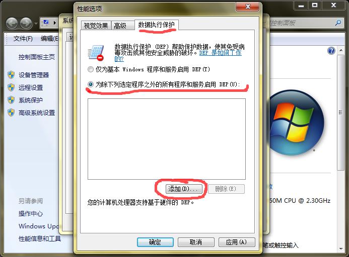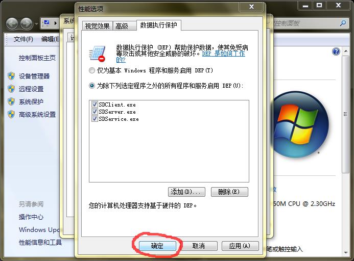 数据执行保护添加方法 | 浏览:686 | 更新: 2016-09-09 10:25 | 标签:速达图文教程 速达视频教程 了解详情 优惠信息限时特价优惠,走过路过不要错过! 速达软件是企业应用比较广泛的企业财务和业务管理软件。 适合版本 所有版本 方法/步骤 数据执行保护添加方法 2016-07-30 START 1 1.桌面上“我的电脑”上点右键,点“属性”。 2 2.点左边的“高级系统设置”。 3 3.点第一个“设置”。 4 4.选择“数据执行保护”选项卡,选择下面“为除下列选定程序之外的所有程序和服务启用DEP”,然后点下面的“添加”。 5 5.找到速达软件的安装文件夹,把里面的三个可执行文件添加进去。 6 6.添加好之后,点确定退出即可。 END 注意事项 一定要定期做好数据备份,以防电脑突然出现问题导致数据丢失。 关注本网,查看更多使用教程。 为你推荐 速达财务凭证批量打印12082016.9.19 速达3000凭证批量打印12932016.9.19 速达财务报表查询16862016.9.15 速达财务反结账10082016.8.22 电脑Ip地址查看方法10602016.8.01 相关标签速达财务速达3000速达5000